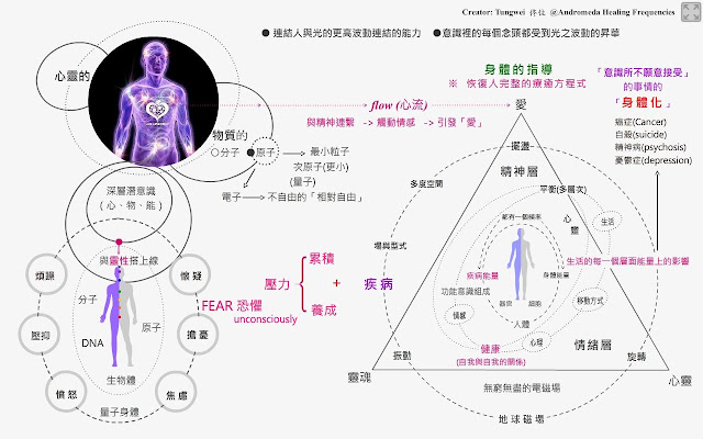 三次元的物質世界,開始回應由外湧入的高頻率能量–第四次元,這個你原來不及得更高層次覺知,正讓你知道它的存在。我很興奮而且知道生命不只如此 !我想要更好! 第一階段有個徵兆是心智與身體的合一,當心智與身體合一,靈或靈魂就會顯現,而你會發現原來祂始終存在於一切事物之內。